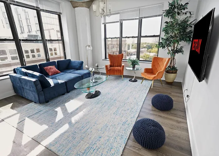 O apartamento Mccormick Place Luxurious And Spacious 3Br In Downtown Chicago With Optional Parking Sleeps 10 Guests de 200 m² é um óptimo lugar para ficar no bairro San Giuliano de Chicago, a cerca da caminhada de 25 minutos do Aquário de Shedd. Os hóspedes podem relaxar e apreciar as vistas para a cidade do pátio deste apartamento.